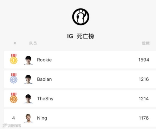那么,这里TheShy所说得别的东西,究竟是什么呢?不少网友都怀着好奇心调查了IG战队的死亡数,结果却令人颇有些哭笑不得。原来在IG战队的死亡记录中,真正的死神并不是TheShy而是中单选手Rookie,他一共阵亡了1594次,也是目前全LPL死亡数最多的选手。