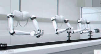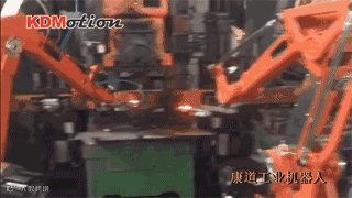 冲压(锻压)生产线上几台冲压机器人完成上下料动作▼