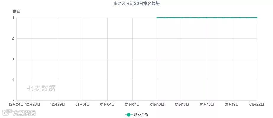 因众多“老父母亲”给力,这款尚未有官方汉化版本的《旅かえる》(《旅行青蛙》),1月10日起霸榜中国App Store免费应用和游戏应用的冠军宝座,搜索量激增。除中国外,日本是该游戏的第二大市场,应用总榜位列第99名。另外,美国、韩国、加拿大、澳大利亚等地区也有下载量,但数量相对比较少。