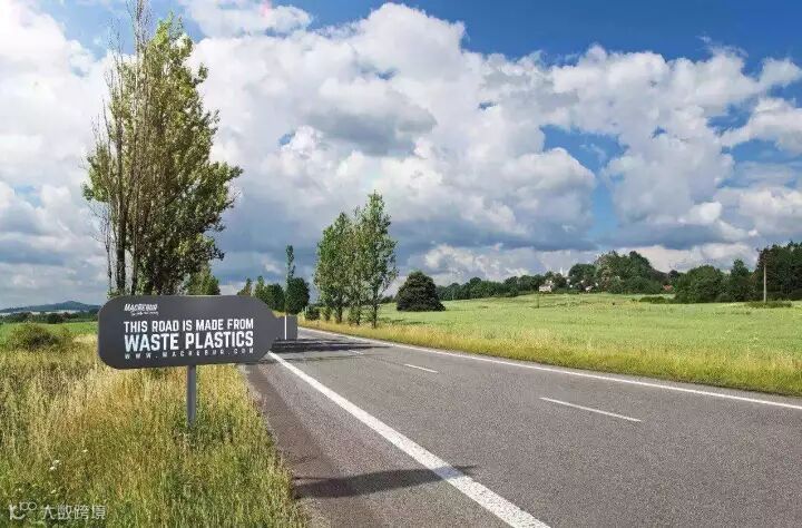 路牌上介绍这条路:这是一条由塑料垃圾制成的公路