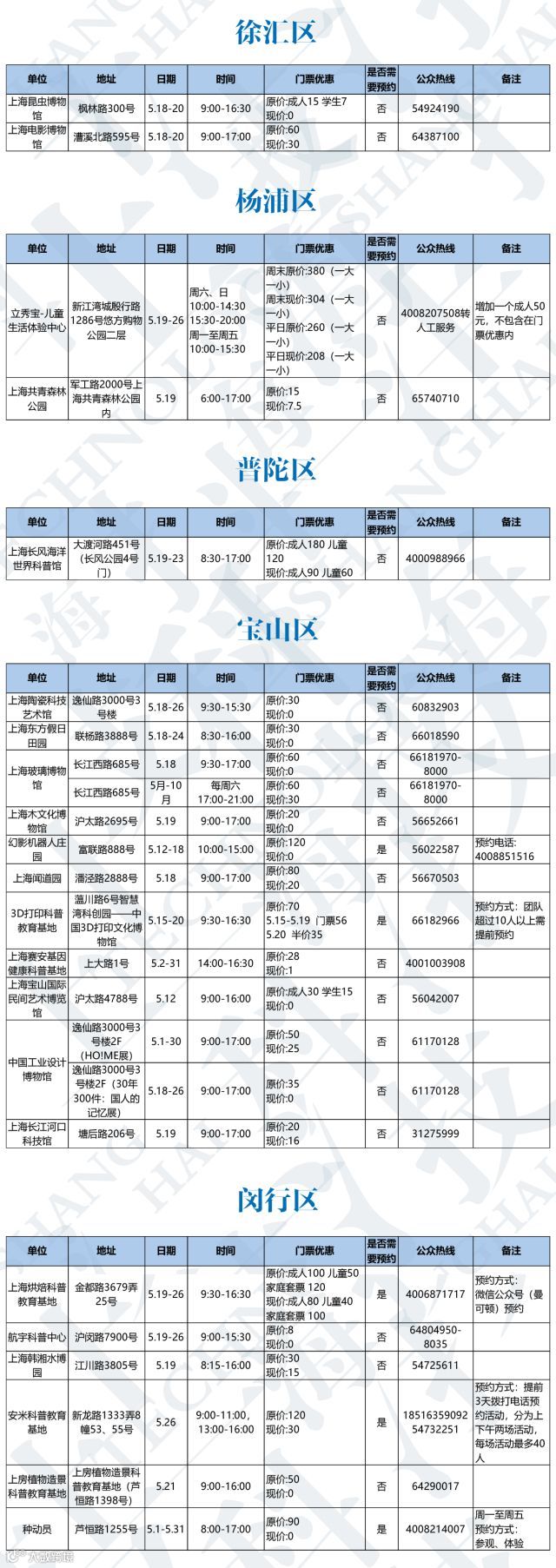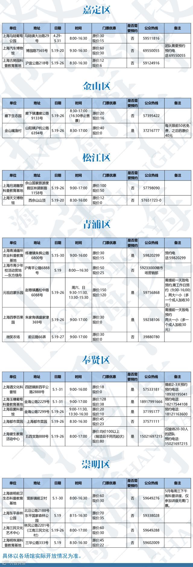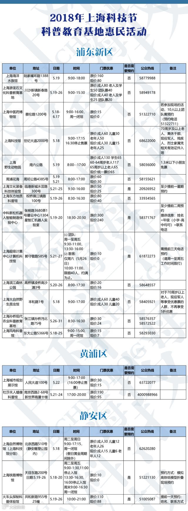 想带娃来一趟科学之旅吗?市科委说,今年科技节期间(5月19日—26日),在原有200余家免费科普教育基地的基础上,另有62家科普教育基地将在不同时间实行门票优惠或免费。