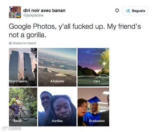 这并不仅仅是法律AI的问题,也是所有AI共同面对的问题。谷歌的AI就犯过一个错误,2015年谷歌图片App将一位黑人的照片识别成大猩猩,2018年初有好事的媒体又测试了一次,发现谷歌并没有修复这个问题,只是单方面屏蔽了几个敏感的关键词,似乎这个问题修复起来非常复杂。