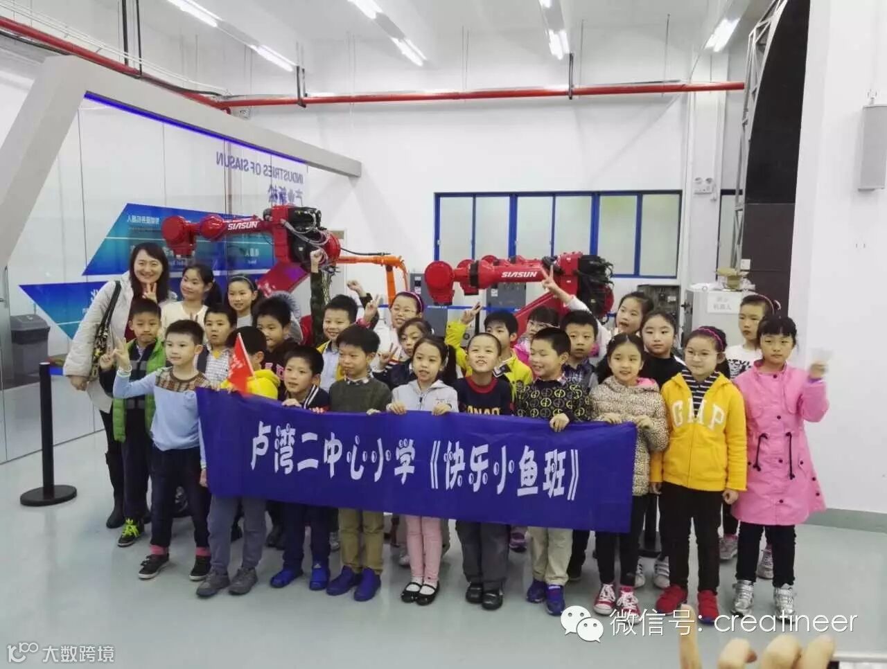 为积极拓展小学生们的科普活动内容,4月23日周六下午,上海卢湾二中心小学二(1)班的同学们利用周末时间由老师带领,同家长们一起走进了位于上海浦东金桥自贸区的国内机器人龙头企业-中科新松有限公司,和新松旗下国内首个机器人创客空间-星智汇。