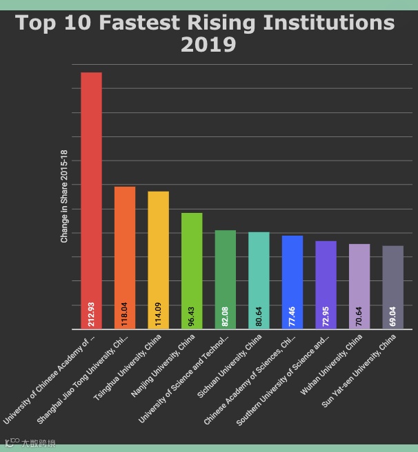 上升最快的十大机构被中国包揽:国科大位列第一,上交大、清华位列二、三
