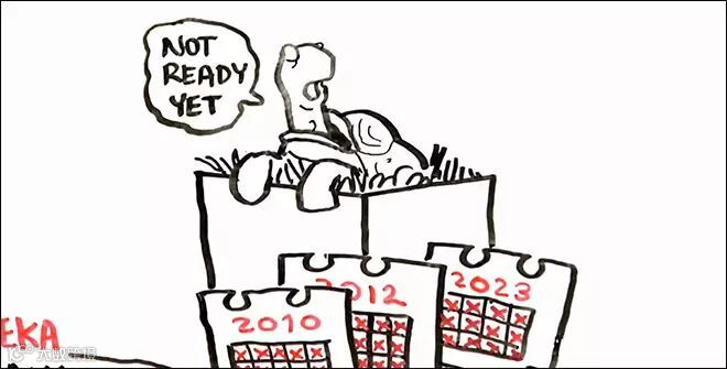 有个关于“全球资讯网”和 Tim Berners-Lee(全球资讯网的创始人)的好例子。这是个Berners-Lee致力了十年的故事。但当他刚开始的时候,他对于自己即将发明的新媒体并没预见到全貌。开始时,他只是在做一个附带的计划去帮忙整理自己的资料。几年之后他放弃了那计划,然后开始做别的东西。而仅在大约十年之后,全球资讯网的完整愿景便诞生了。