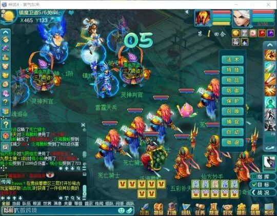 本关除了灵神判官是个龙宫之外,其他所有怪都是天宫,难就难在主九霄雷动打出破魂效果,小怪群法打出成吨伤害。灵神判官的血线是比其他怪低的,集火很容易秒掉。这一关因为都是天宫,建议用耐法宠打。