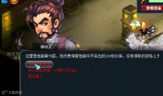 但是转到高内丹、牌子、高级珍珠这些比较好的东西,你并不能立刻获得,奖励会保存在迷宫神秘人处。还需要继续往上爬,到特定层数才可以拿出来。这个条件就比较欺负一些配置不好的队伍,杀不上特定层数是无法取出奖励的!就是你在75层以下转到了130级珍珠,你必须杀到75层才可以把奖励拿出来。