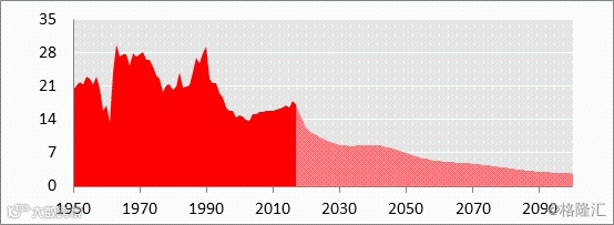 图中2016-2017年出现的微弱反弹背后有两个原因。一是全面二孩政策实施释放了之前被限制的生育意愿导致生育堆积,二是人口相对较多的80后和90初进入生育高峰期。