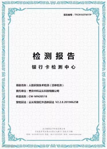 按照规范,云从科技的活体检测模组和刷脸支付PAD也已顺利通过了BCTC(银行、银联指定刷脸支付检测单位)检测。