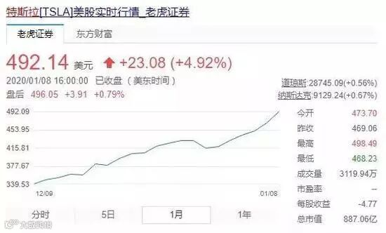 双喜临门,股价也应声大涨,目前特斯拉股价报492.14美元,市值已经迈过800亿美元大关,超过老牌车企通用+福特之和。