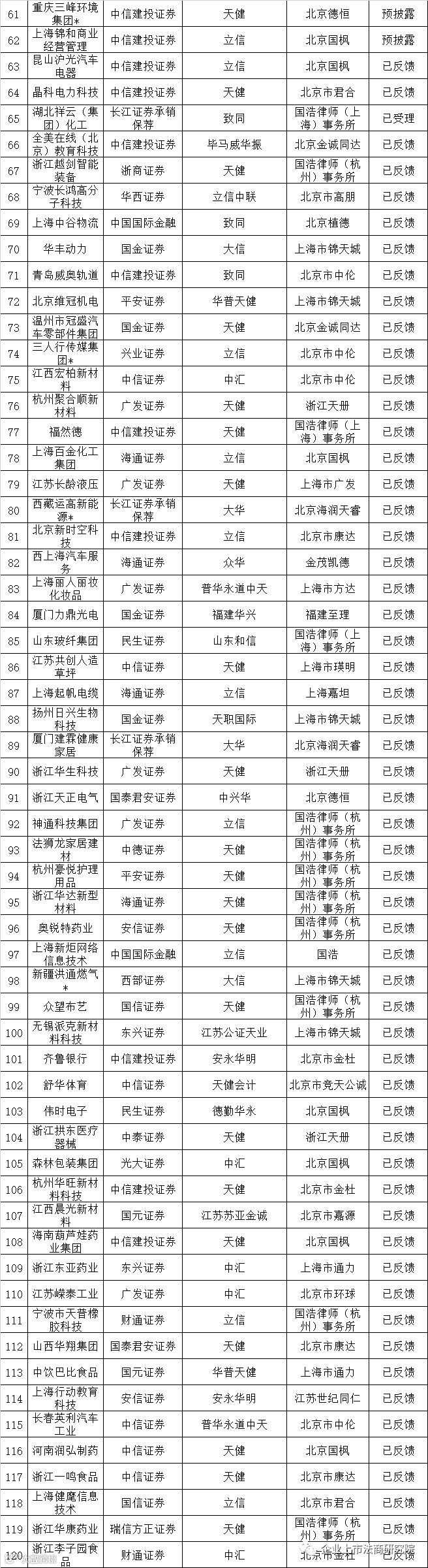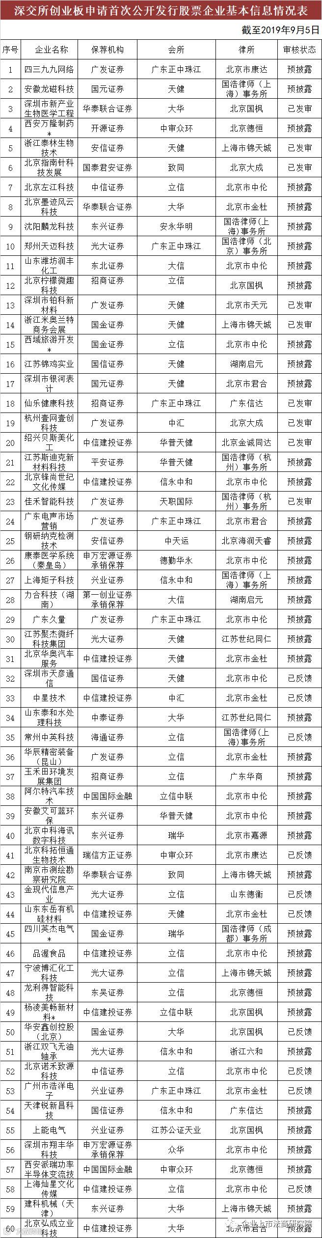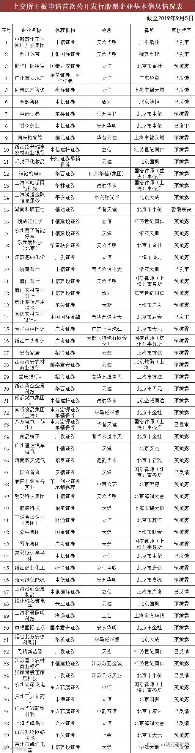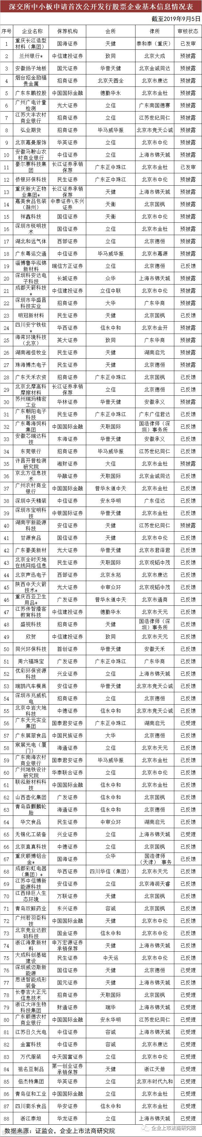 证监会公布IPO排队企业基本情况(截至2019年8月22日)