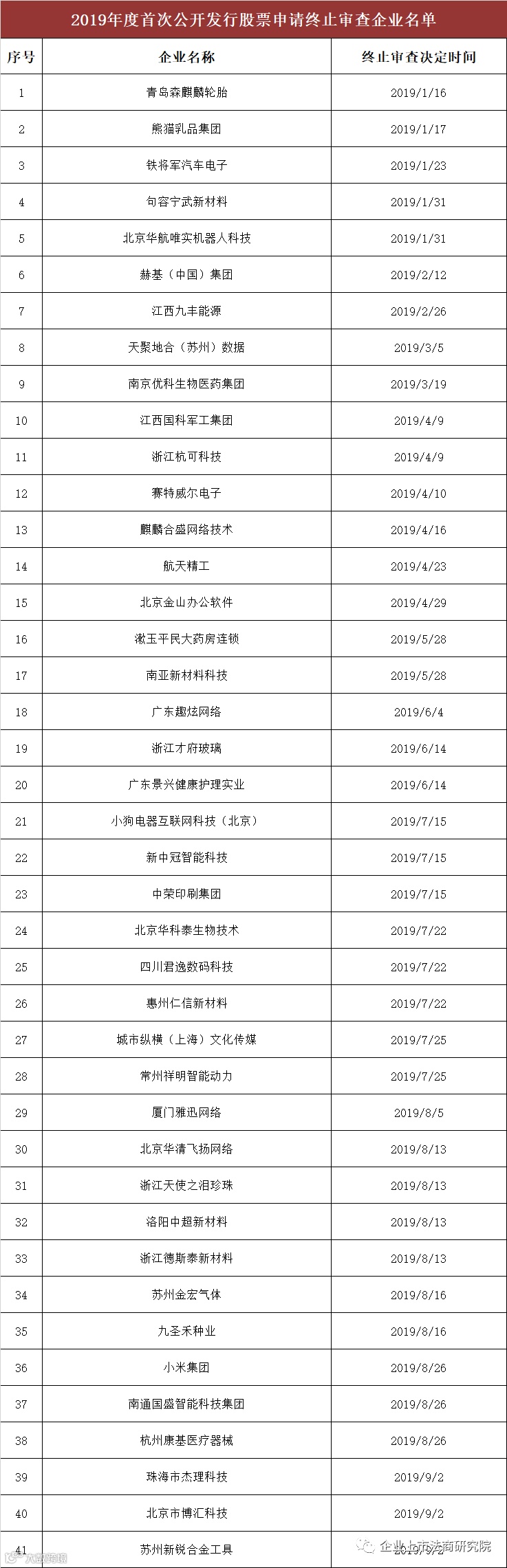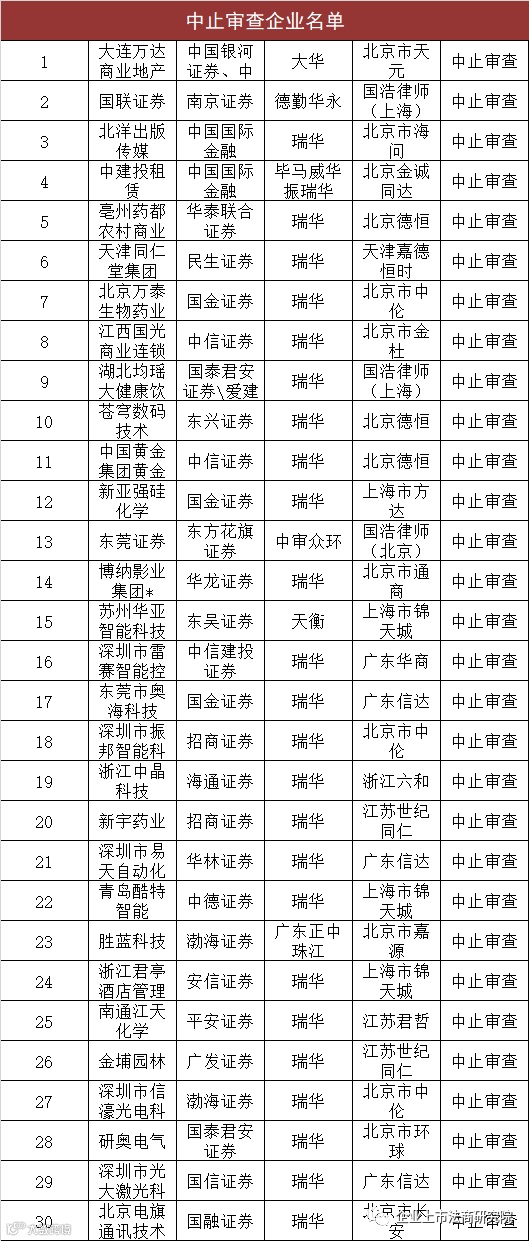 另有30家企业被中止审查、41家企业被终止审查,1家企业暂缓表决。