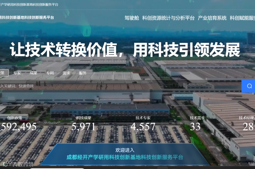 围绕立园满园,深入双流区、成都经开区等园区深入服务,建设运营双流区科技成果转化和技术交易中心等创新平台,重点构建了以需求验证成果转化可行性的需求挖掘-标的分析-精准匹配-跟踪服务的创新体系。