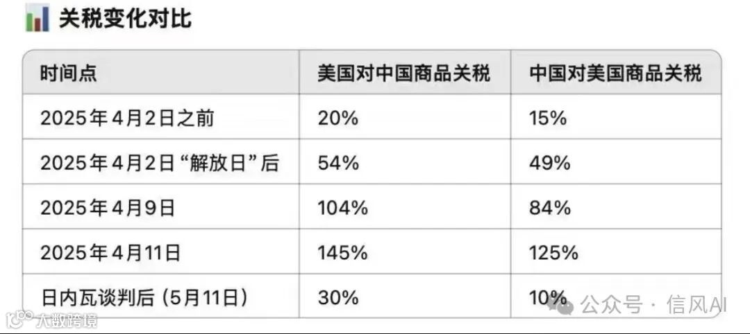 “美国扛了一个月零十天就服软了!这简直是历史性的一天!”昨日,《中美日内瓦经贸会谈联合声明》发布后,深圳某机械外贸企业创始人王先生在朋友圈激动地写下这段话。这份声明标志着自2025年4月美方单边加征“对等关税”至145%后,中方以坚决反制与高效谈判,迫使美方加征的91%关税,并将剩余34%中的24%暂停90天,仅保留10%。