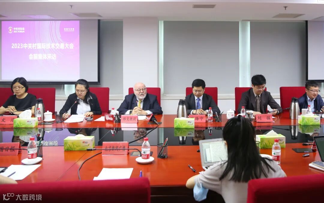 “ 5月19日,2023中关村国际技术交易大会集体采访活动在京举行,北京市科委、中关村管委会,技术交易大会组织单位相关负责人,以及参会企业代表参加会议并回答记者提问。”