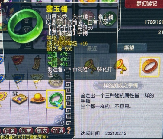 这位玩家就有点狗托了,新年第一天鉴定了一个80级手镯,没想到就出了三条同属性成就,而且还是三条气血,爆了不少属性,运气真的好。