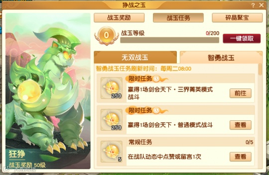 战玉任务分为【无双战玉】和【智勇战玉】两种。任务奖励需在刷新前领取,否则会无法领取。