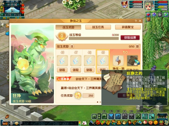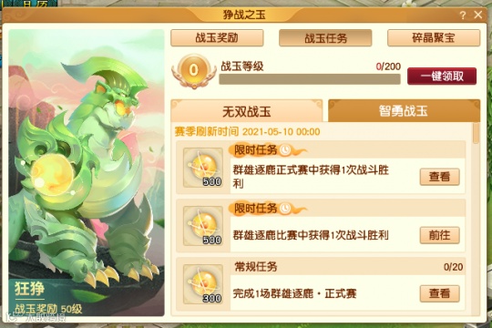 此外, 2021年5月11日维护前仍能领取战玉等级奖励,但战玉任务及未领取的奖励将无法领取,请少侠及时领取。