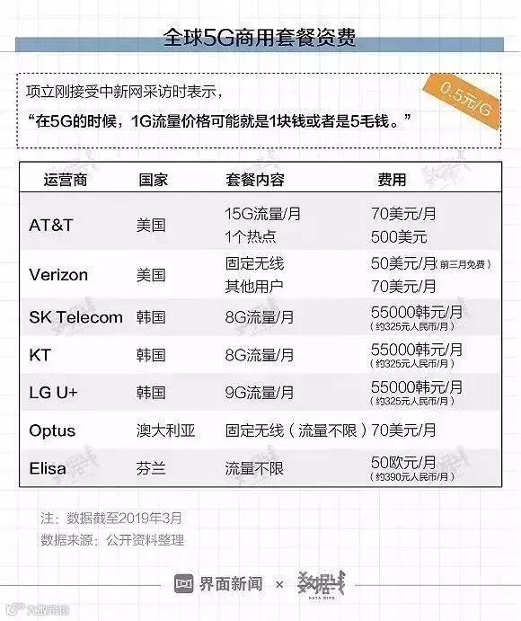 现行全球的5G商用套餐资费,