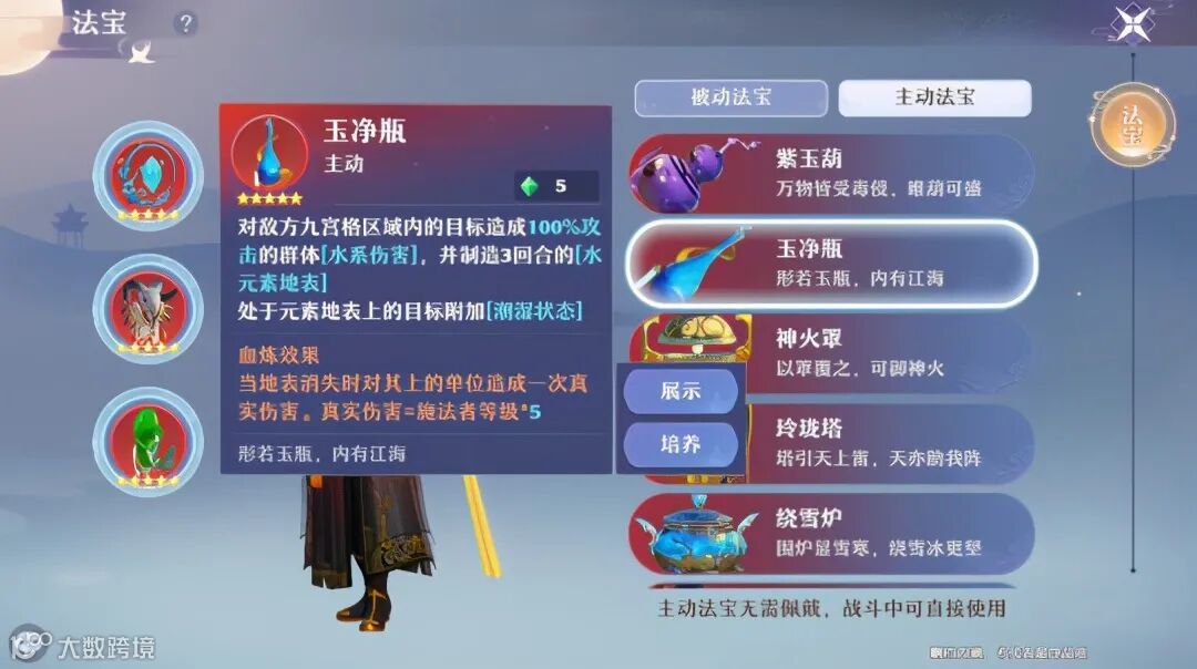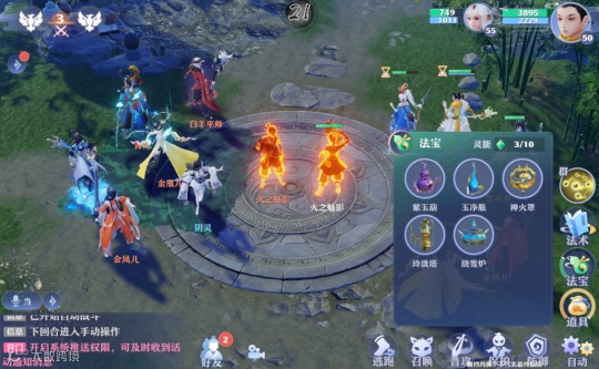 更妙的是,《梦幻新诛仙》开放大世界中的各种地表元素:火、水、电、冰、毒,在法宝特技的作用下,都会产生连携附加效果,主动法宝拥有不同的专属元素,比如紫玉葫是毒属性法宝、玉净瓶是水属性法宝、噬血珠提升暴击率等等。