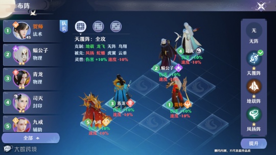 游戏在每一次对局前,都设置了“入战确认”界面,仙友闯关可以通过“布阵”进入预设阵容。前期设定好仙友的位置排列阵型后,如果在回合战斗中被克制,也可以通过位移技能来改变阵型,实时位移调整位置转换阵型,激活不同的阵型效果,这也使得回合制更像是战略制,更考验策略性!