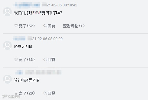 而在职业选手主动挑事,问候LOL设计师之后,亦带动起了许多路人玩家的节奏,不少吃瓜网友都纷纷表示“设计师亲X不保”,“打着打着,打野差2级是挺烦的”,“有道理!以后我就住上路了”,“设计师又是经典一刀切”