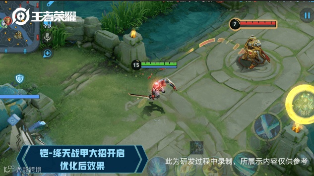 这次的优化主要体现在建模和技能特效这两个方面,铠的角色模型被改得更有金属质感。人物背景的对比度获得了增强,细节方面的打磨相比之前也有了长足的进步。