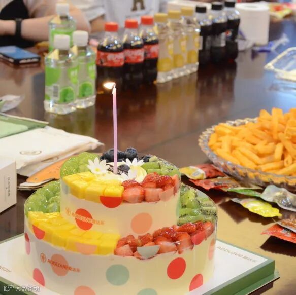 随着欢快的音乐声,寿星和同事们陆续走进了公司一会议室,现场热闹非凡,人事行政中心精心准备了生日蛋糕、水果、零食、饮料和礼物,给寿星们带来祝福和惊喜!