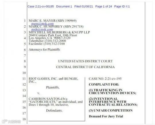 或许是觉得光靠管制游戏内的外挂还不够,近来拳头还联合了Bungie公司开始联手打击《瓦罗兰特》和《命运2》游戏中的作弊行为。两家公司的律师联名向作弊软件开发商GatorCheats提起诉讼,指控后者销售和分发“让玩家获得不公平竞争优势的恶意软件产品”。