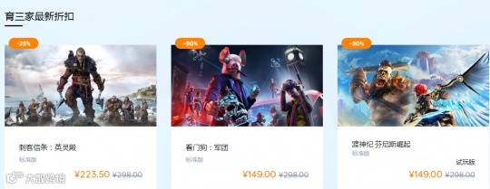 去年发售的三款3A游戏,在本次的春季促销中都按照自身的热度和玩家口碑给出了不同的折扣价格。《刺客信条:英灵殿》作为育碧近几年来品质最好的游戏之一,在春季促销活动中被开出了75折的优惠价格,标准版仅售223.5元。