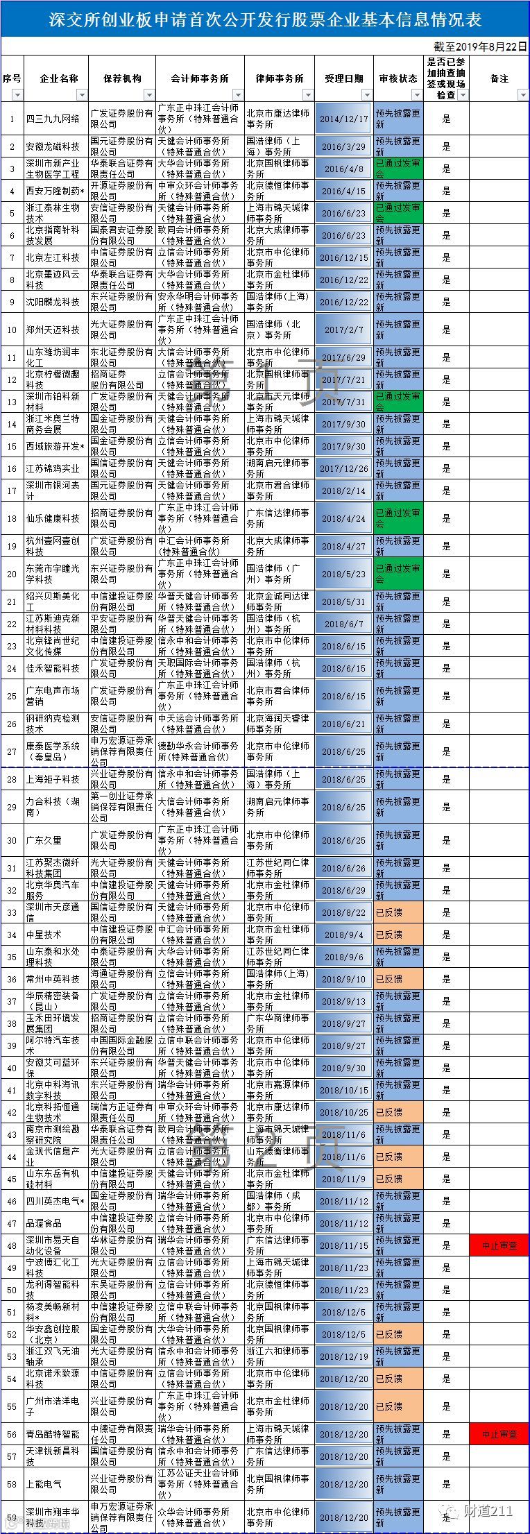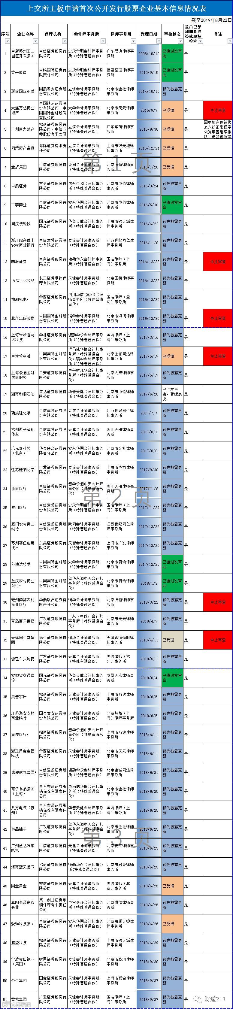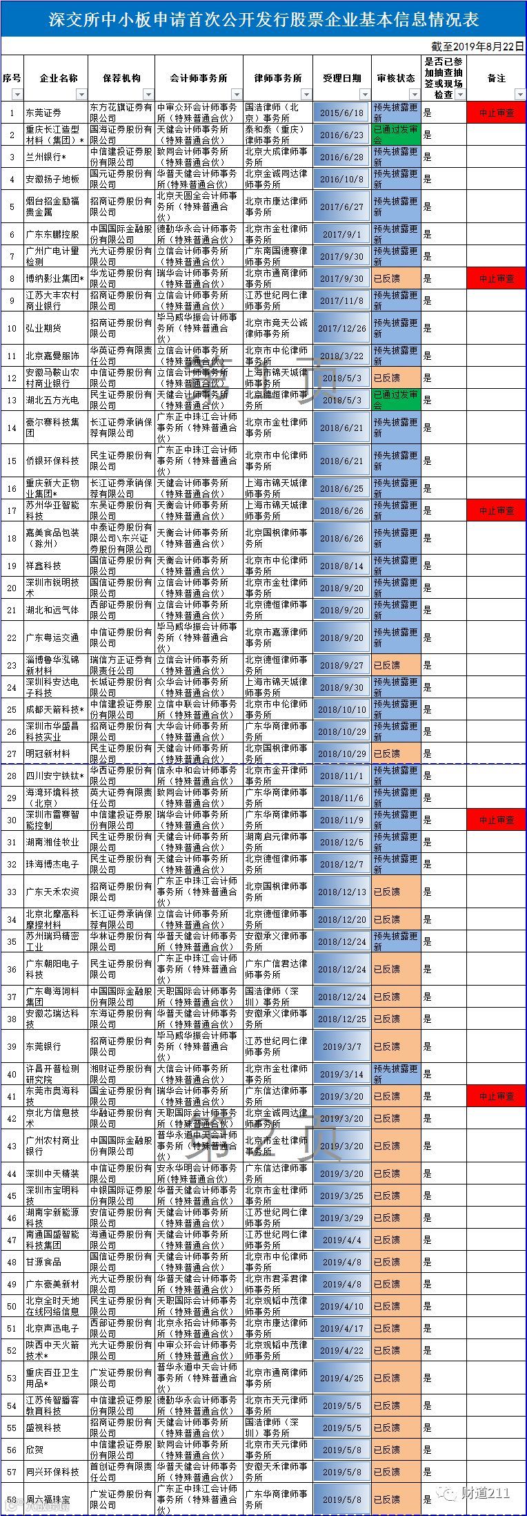 【关注】证监会公布IPO排队企业基本情况(截至2019年8月22日)