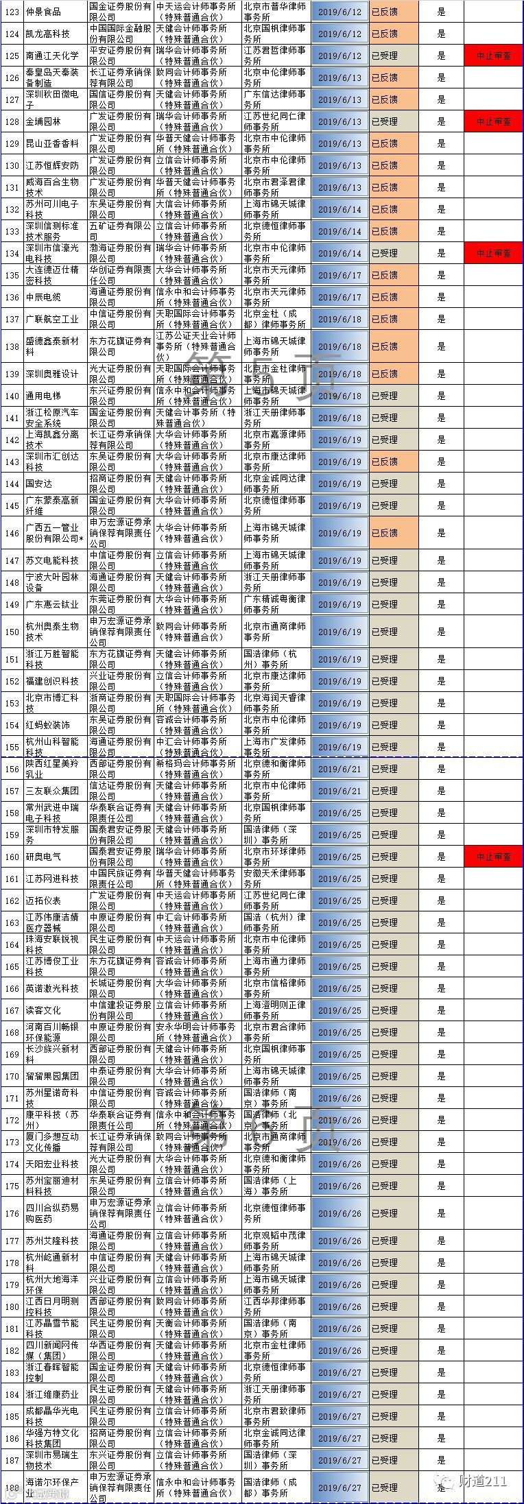 证监会公布IPO待审企业名单,截止2019年8月22日,上交所主板在会企业164家,深交所中小板在会企业90家,创业板在会企业185家。