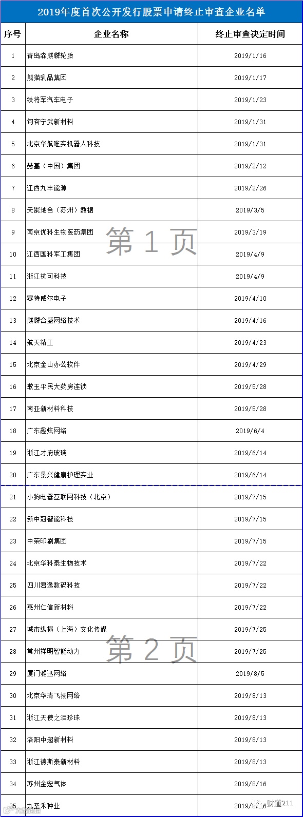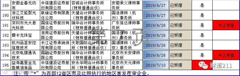 终止审查企业名单如下: