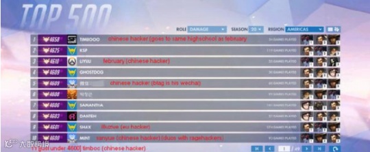 去年年初《守望先锋》的天梯榜前十里面有六个人都是开挂打上去的,而这六个人中五个都是中国人。这些开挂者嚣张到直接将ID设置成微信号,目的就是为了吸引其玩家联系他去买挂。
