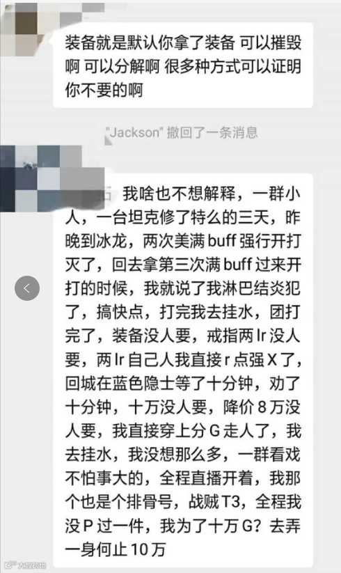 毋庸置疑,免费拿走一把黎明的行为肯定让团员们炸了锅,不仅如此,连微信群里的玩家们都看不下去了。群里有玩家指出了这个问题的关键所在,那就是证明自己不是毛装备的方法有很多,比如可以摧毁、可以分解、甚至可以插给法师术士让他们装备。