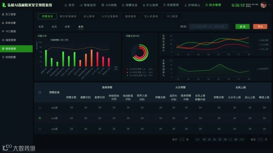 针对这一工作特点,弘和集团研发的“弘和AI森林防火安全预警应用平台”,其“AI预警”和“智能林火监控系统”两大功能具有先进的引领意义。
