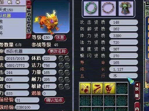 大家看这只D5狗就知道应该是有故事的吧?这是多年前一位龙宫扫塔带的D5狗,当时海量玩家升级,D5狗的寿命都不够用,吃豆斋果加寿命,资质都降到这么低了。