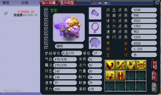 这只谛听没吃元宵,要是打本高必杀和高偷掉泰山就更给力了,这样套装也好带一些。要是这个价格怕是没人会买,估计要连降几次才有喜欢皇宫的玩家会考虑。