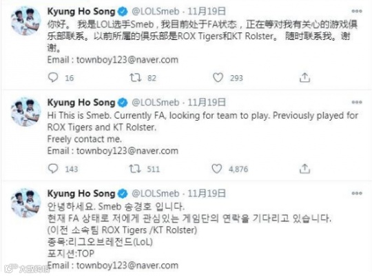 此前Smeb原本有望在今年春季赛加入ES战队,但却因为疫情影响和签证问题被迫搁置。冬季转会期开始时他曾在推特上发布过中、英、韩三语求职信,不过一个月时间过去了却依然没有队伍联系他,这才让Smeb选择了就此退役。