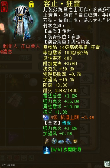 来自一位克火风法男仙的玩家展示,虽然不能跟大神比,但这身装备及伤害,日常够用了!