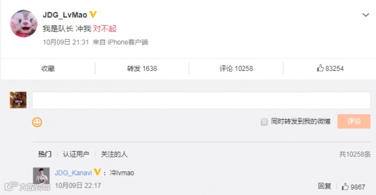 不过不知道是不是因为近来各家战队的整活强度越来越大,打野Kanavi刚道歉完就跑到队长lvmao的微博下面回复:冲lvmao!