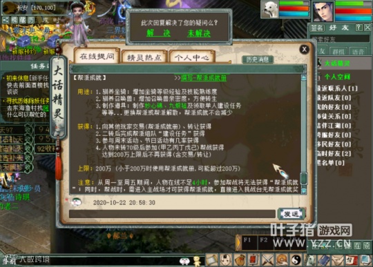 帮派成就,角色在2转以后参与组队帮派任务时,还会有额外的帮派成就奖励,如果你是五开玩家,那五个号就是五份收入,帮派成就可以用来训坐骑等级和技能、驯养召唤兽亲密度,方便转生,制作各种帮派道具,就算帮派解散,成就也会随着您的角色带到下一个您加入的帮派中。