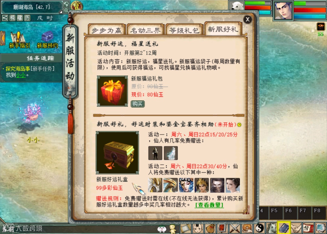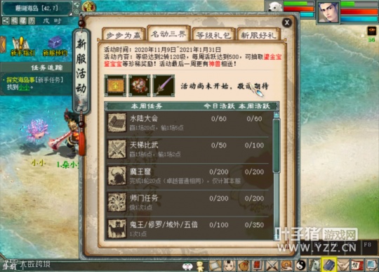 步步为赢、名动三界、等级礼包、新富豪李...这些新区的活动福利非常之大,只要参与其中就有机会拿到手。特别是名动三界活动中,只要完成任务增加游戏活跃度,最后一周还有超级给力的神兽大奖!