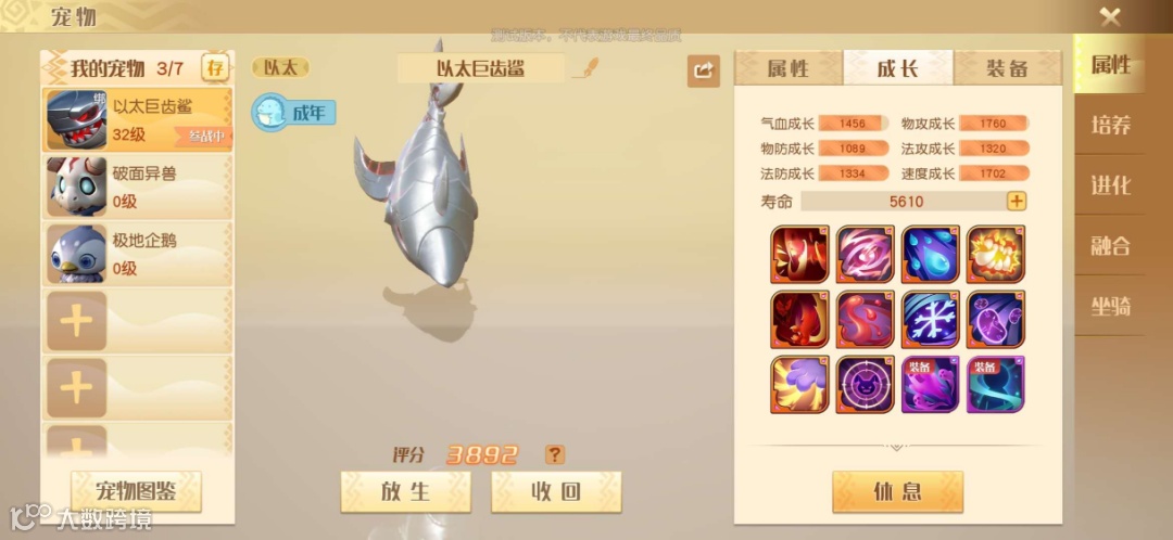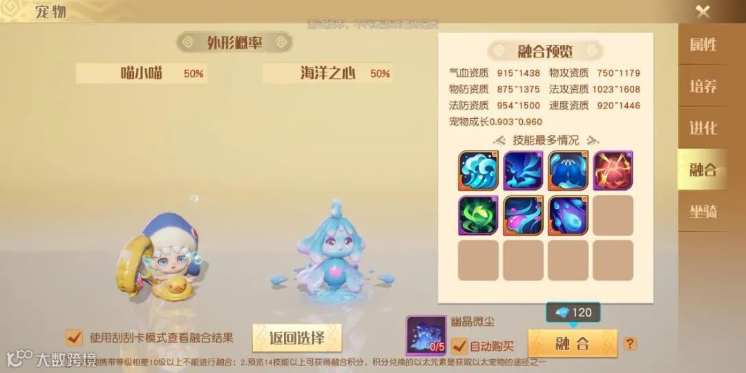 4、以太宠物合宠出现的概率比一般宠物要低很多,而且入手较为困难,建议先保留足够多的胚子在考虑合成以太宠物。