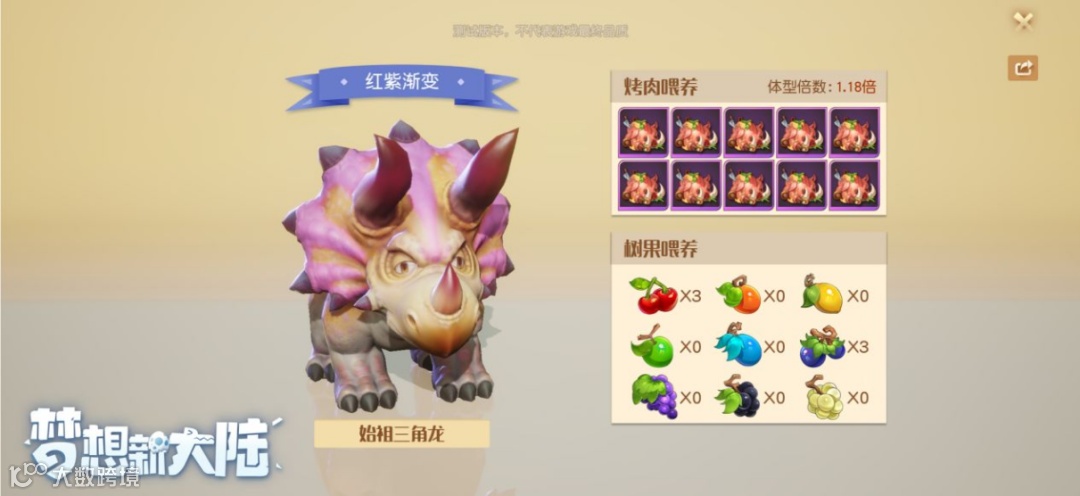 在《梦想新大陆》中,比起打书合宠更加紧张刺激的,还有通过喂养树果对宠物染色的玩法。本作共有九种不同的树果,通过调整投喂的数量和比例可以让宠物呈现出不同的颜色组合,而在这个过程中还有概率将宠物染出特殊的花纹和“效果色”(渐变、条纹等)。