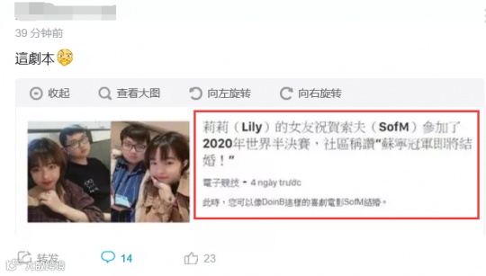 据悉,骚粉女友在他尚未成名时,就一直陪伴他征战职业赛场,并在骚粉初次登上LPL舞台时,亦陪他赶赴中国,骚粉整整4年职业生涯背后,均有女友默默的支持。所以这次“SN夺冠骚粉原地结婚”消息传开之后,大部分LPL网友均表示有S8赛季IG内味了,并调侃到快进到骚粉拿下FMVP,后因在柏林上学出轨小三,两人因感情不合分手。