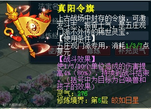 真阳令旗作为五庄的门派法宝,单人PK和天地的时候都很好用,这次还略微加强了。
