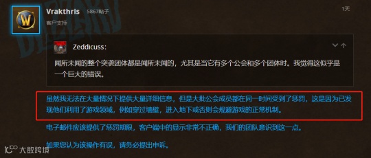对于一人开挂全团被封的手法,网友们讨论很多,但实际上在魔兽世界的历史上是有过先例的。正好也是在当年的60级时代,正好也是TAQ,有玩家利用穿墙BUG直接进入克苏恩房间,当时暴雪也是直接封掉了全团。这次的历史重现,倒有点原汁原味的意思了。