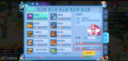 利用礼包以及各种福利得到的还童丹,可以用来洗出35级以下,资质不错的强力萌宠,搭配兽决,有一定的成长空间。
