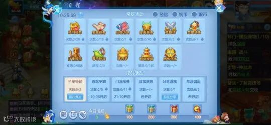 但需要注意的是,当角色升级到达34级,想要留在排行榜上,除了日常任务,开服第一天还要额外参加一些可以获取经验的玩法,比如科举答题、封妖玩法等等,也能获取大量的经验、银子。